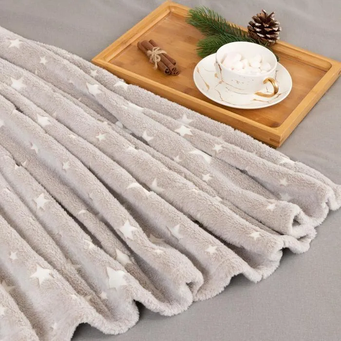Плед светящийся в темноте Этель «Звезды» цв.серый 150*200 см,100% п/э, корал-флис, 220 гр/м2 — Характеристики