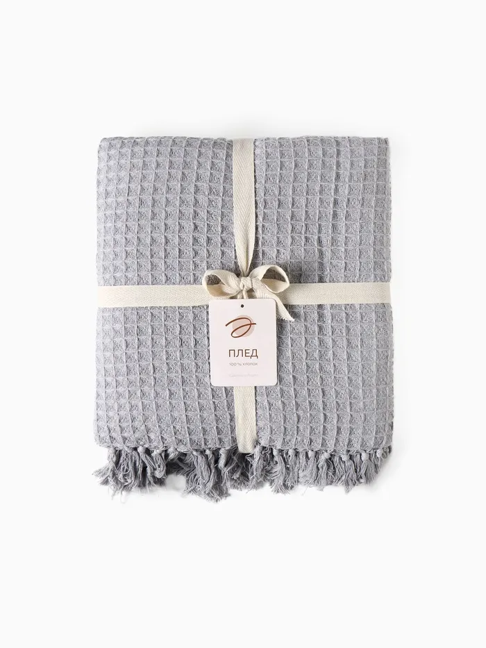 Плед вафельный «Этель» 130×160 см, светло-серый, хлопок 100%, 350 г — Характеристики