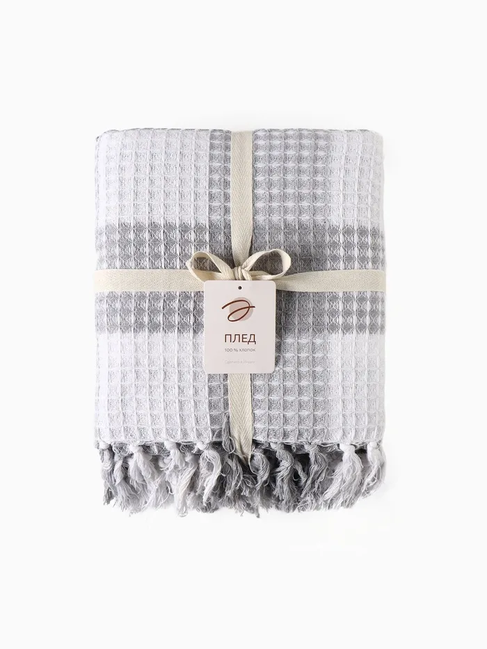 Плед вафельный Этель «Клетка» 130×160 см, светло-серый, хлопок 100%, 350 г — Характеристики