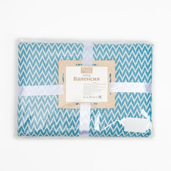 Плед Валенсия 140х200 см, Антонио, цвет белый/бирюза — Характеристики