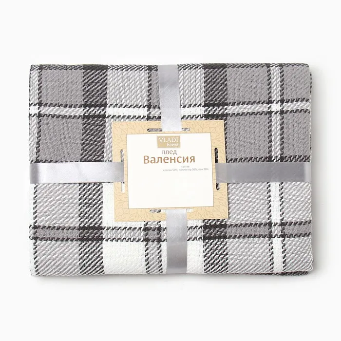 Плед Валенсия 140х200см, 03/BABBLE, бел/дым/т.сер, хл 50%, пэ 30%, пан 20% — Характеристики