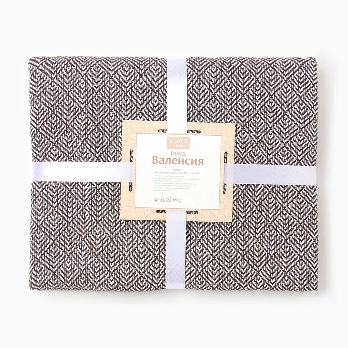 Плед Валенсия 140х200см, 155S/MARE, цв.бел/кастор, хл50%, пэ30%, пан20% — Характеристики