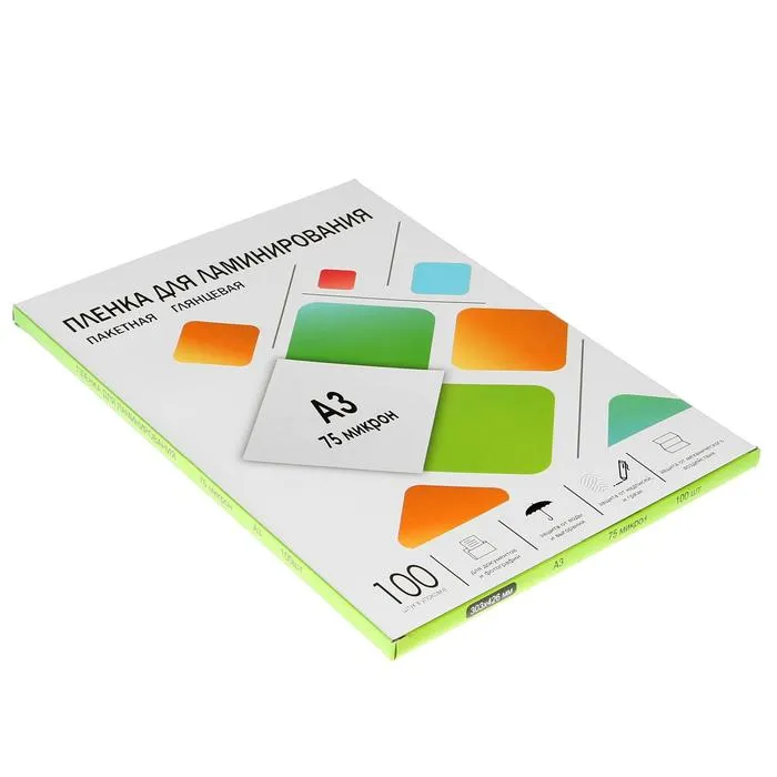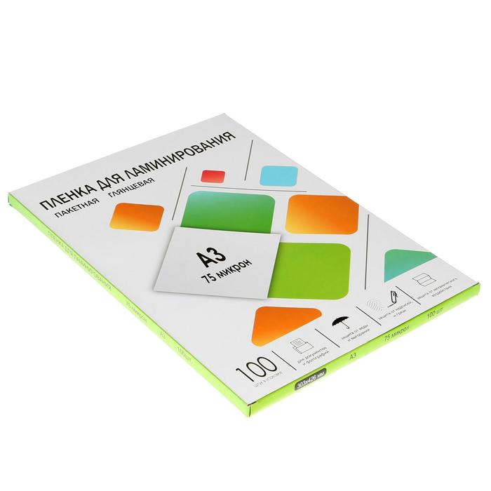 Пленка для ламинирования A3 303х426 мм, 75 мкм, 100 штук, глянцевые, Гелеос — Характеристики