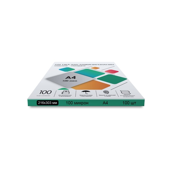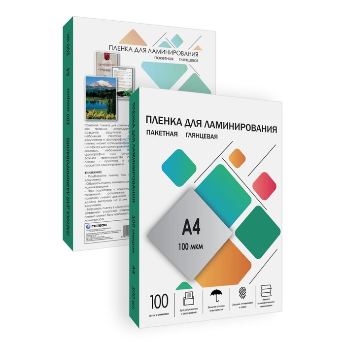 Пленка для ламинирования A4 216×303 мм, 100 мкм, 100 штук, глянцевые, Гелеос — Характеристики