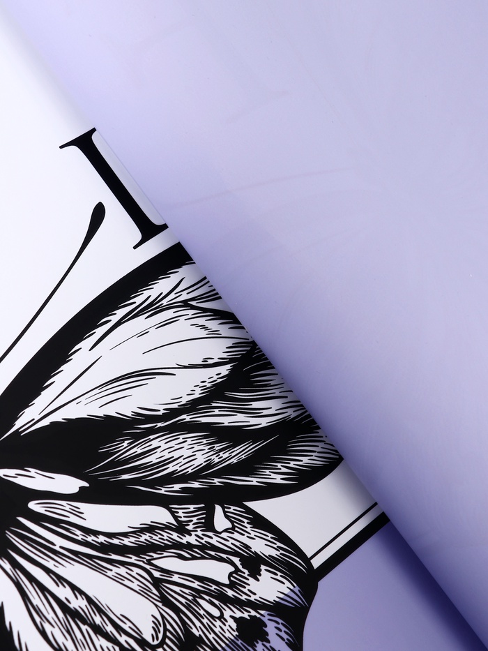 Лиловый цвет и нежный рисунок бабочек делают эту плёнку универсальным выбором для тех, кто ценит эстетику и практичность. Она легко сочетается с разными стилями оформления, добавляя праздничности любому поводу.