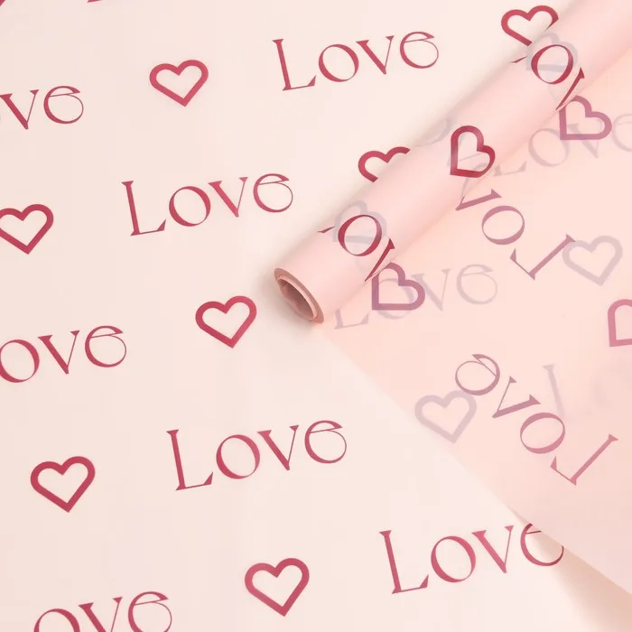 Пленка для цветов матовая, Love, 0.57×10 м, розовый — Характеристики