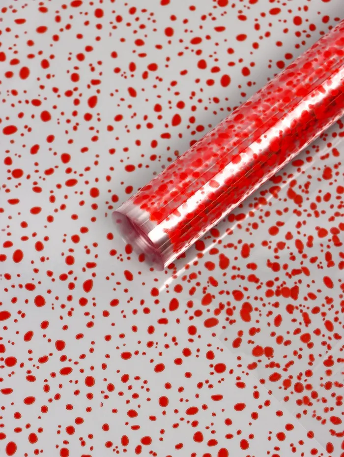 Творите без ограничений: С этой плёнкой каждый сможет почувствовать себя дизайнером. Украсить подарок, создать изысканное убранство зала или подчеркнуть детали интерьера теперь легко и приятно. Прозрачная плёнка с красными каплями – ваш незаменимый помощник в создании праздничного настроения!