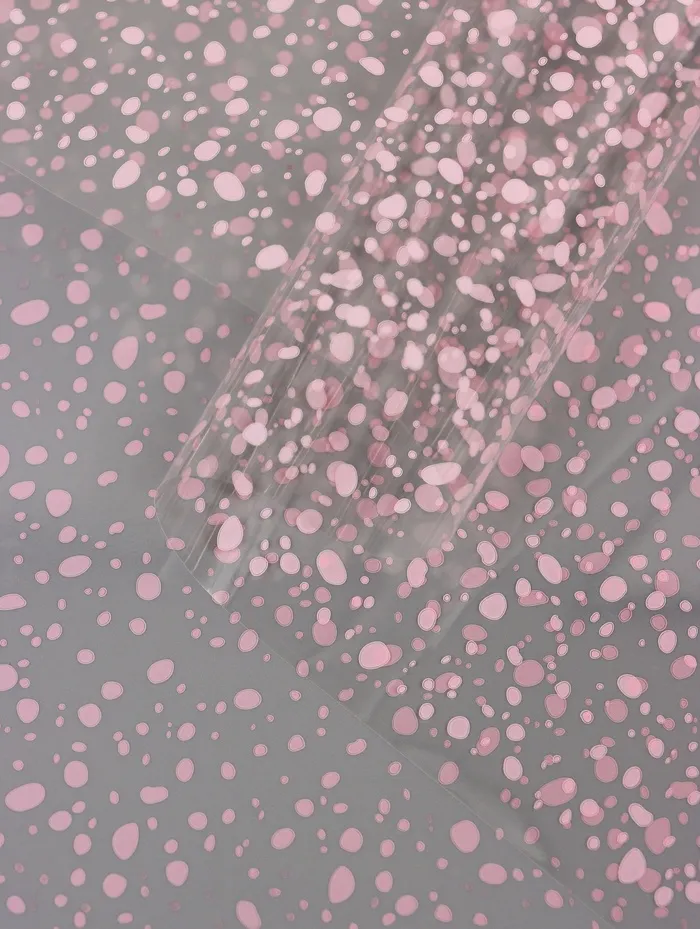 Подчеркните стиль и величие подарка! Розовая прозрачная пленка с узором «Капли» – это универсальный материал для декора любых праздников. Он отлично подходит для Дня святого Валентина, 8 Марта, дней рождений и других мероприятий, добавляя нежность и изысканность в любую обстановку.