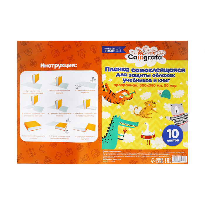 Пленка самоклеящаяся, 50 х 36 см, прозрачная, 10 листов, 50 мкм, МИКС — Характеристики