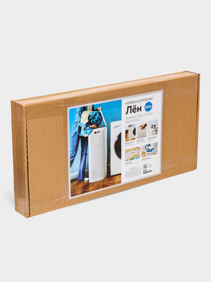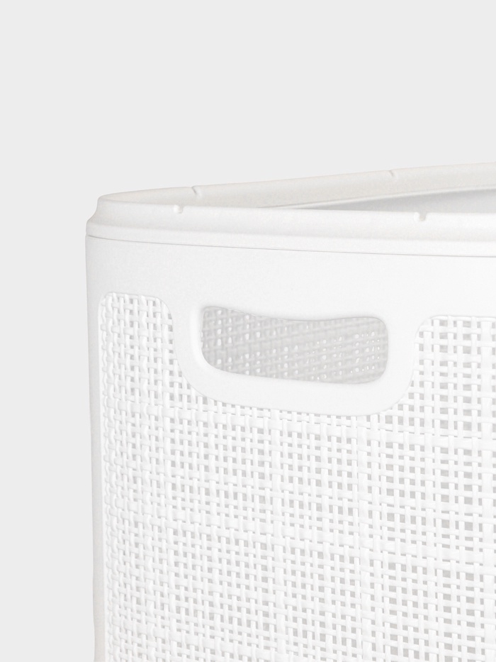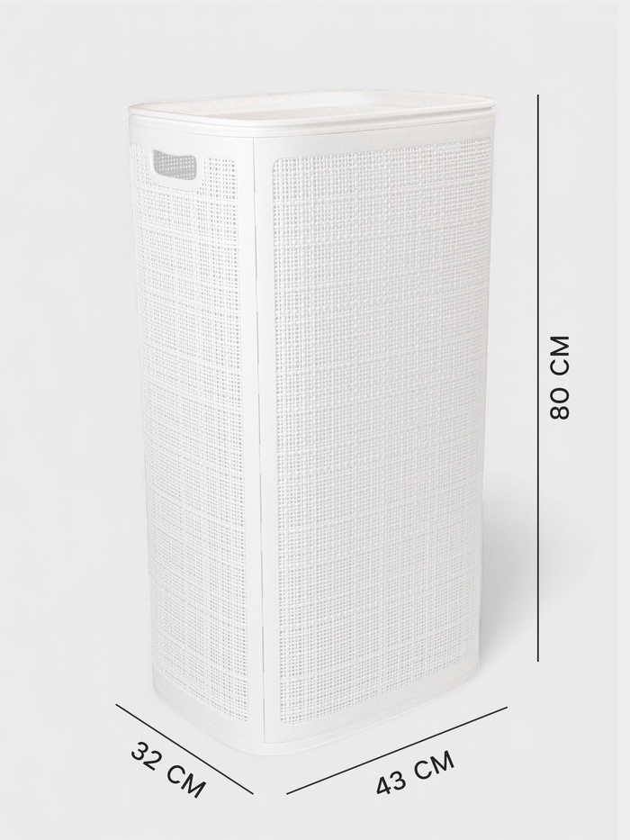 Белая корзина для белья с крышкой «Лён» — решение для тех, кто ценит порядок в больших объёмах. Объём 100 л и габариты 43×32×80 см делают её идеальной для просторных ванных, гардеробных или прачечных. Несмотря на внушительные размеры, изделие сохраняет визуальную лёгкость благодаря чистому белому цвету и мягкой плетёной текстуре, напоминающей натуральное льняное переплетение.