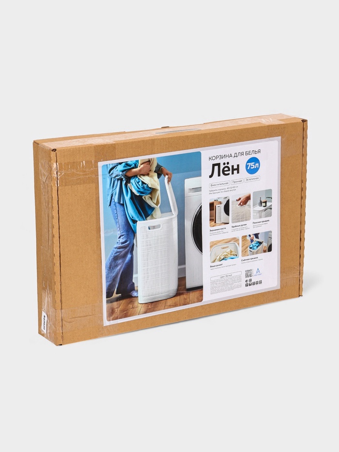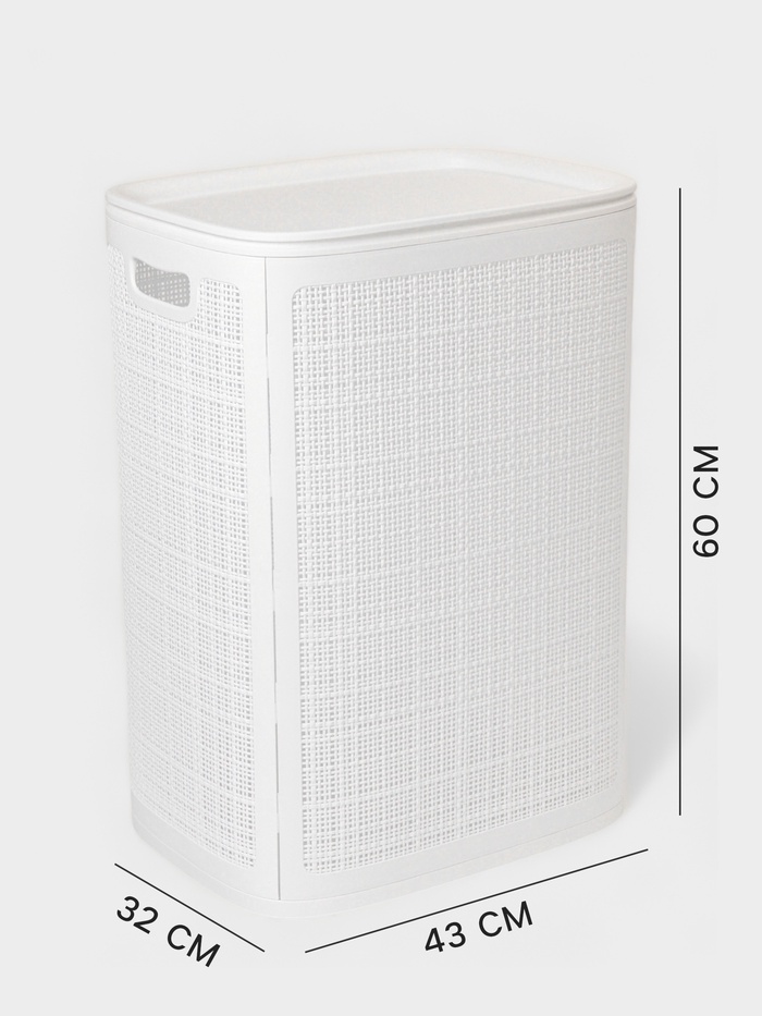 Белая корзина для белья с крышкой «Лён» — вместительное решение для тех, кто стирает часто или живёт большой семьёй. Объём 75 л и устойчивая прямоугольная форма 43×32×60 см обеспечивают простор для хранения даже в напряжённые дни: всё — от повседневной одежды до постельного белья — помещается внутри, не нарушая порядка в интерьере. Чистый белый цвет и лёгкая плетёная фактура придают изделию воздушность, несмотря на его ёмкость.