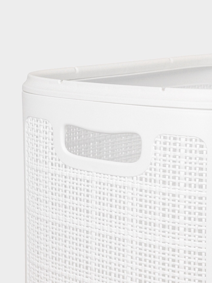 Эта корзина поддерживает ритм жизни, в котором важна не только чистота, но и визуальное спокойствие. Она собирает бельё до стирки, хранит чистый текстиль после неё или служит временным контейнером для сезонных вещей — всё в рамках одного аккуратного предмета. Белый цвет освежает пространство, а плетёная структура добавляет лёгкую текстуру, не перегружая взгляд.