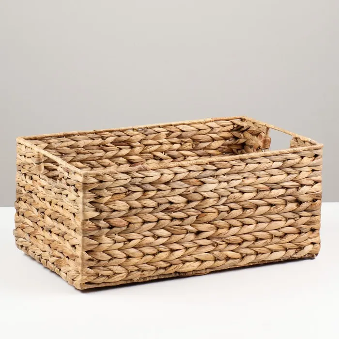 Плетёная корзина для хранения, прямоугольная, 40×26×17 см, водный гиацинт, металлический каркас