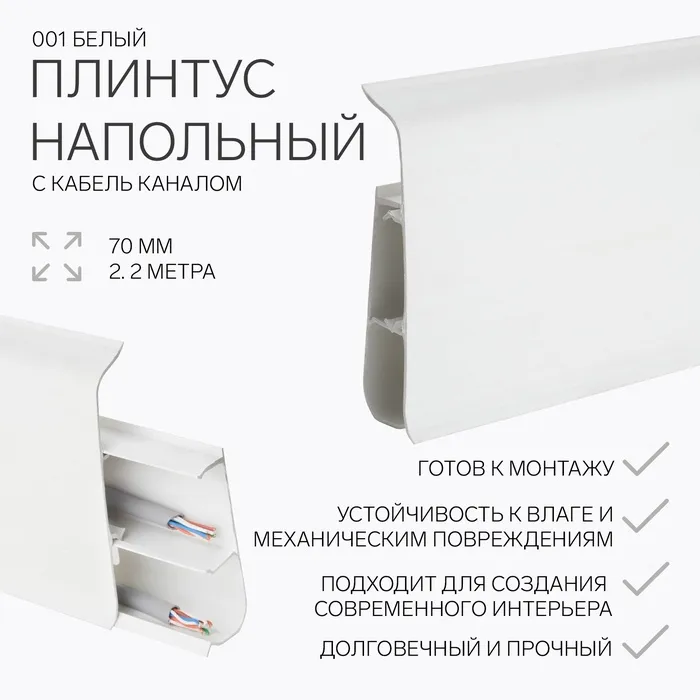 Плинтус напольный «Деконика», 70×2200 мм, цвет 001 белый — Характеристики