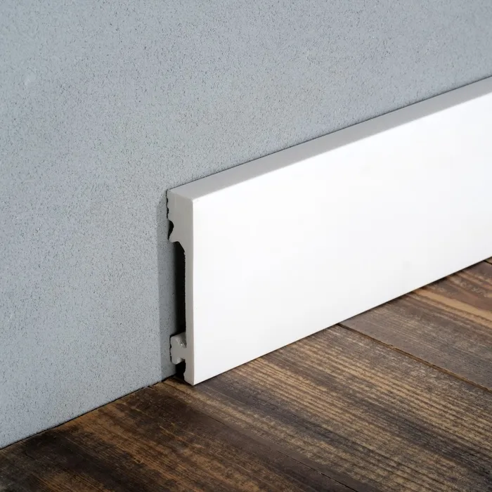 Напольный плинтус изготовлен из полимера ультравысокой плотности (UHD Polymer), что обеспечивает ему высокую влагостойкость и долговечность. Идеальное решение для помещений с повышенной влажностью.