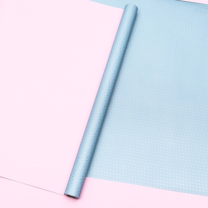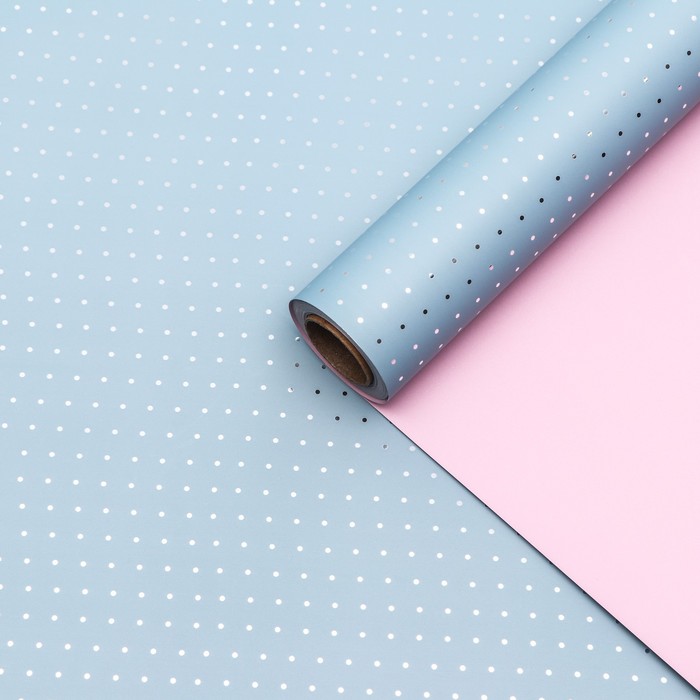 Плёнка для цветов и декора "Серебряный горох", 57 см×10 м, голубой - розовый