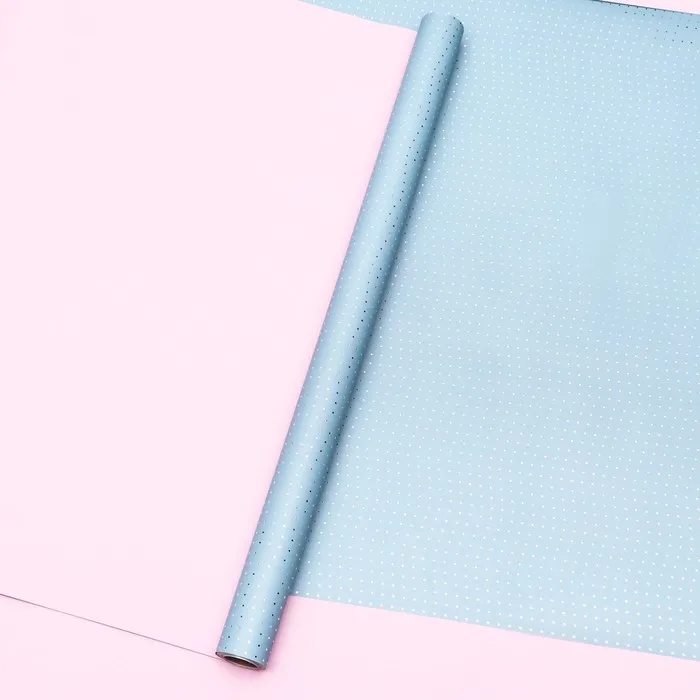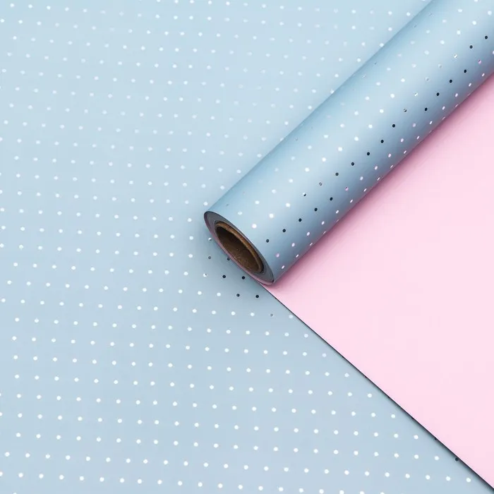 Плёнка для цветов и декора "Серебряный горох", 57 см×10 м, голубой - розовый — Характеристики