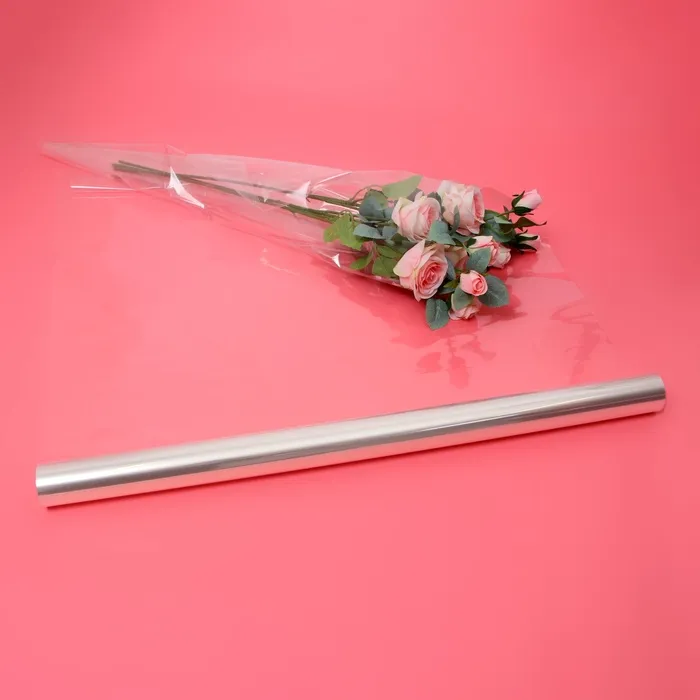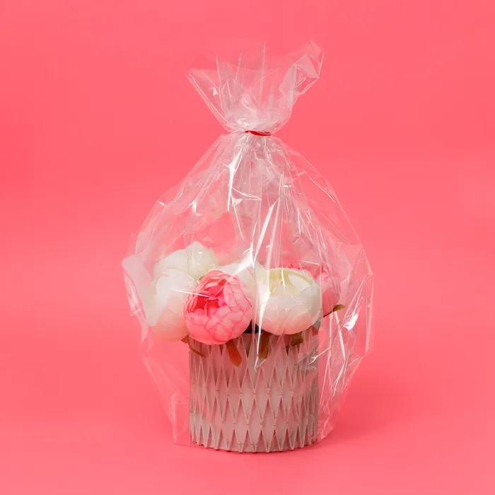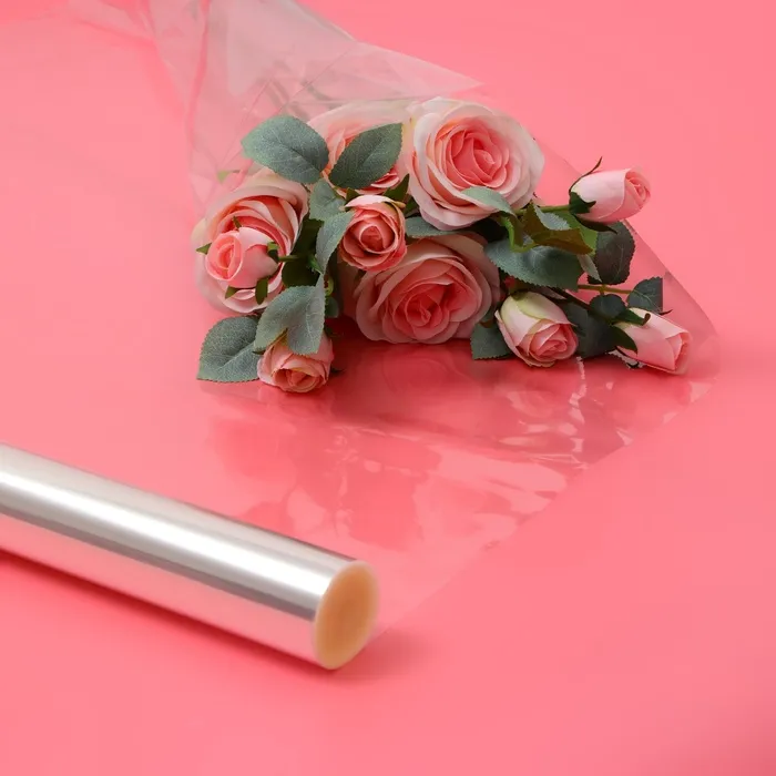 Прозрачная плёнка используется для упаковки цветов, подарочных корзинок и сувениров. Это простое и доступное решение, когда цветам не нужно дополнительное украшение или когда цветок хочется защитить от непогоды.
