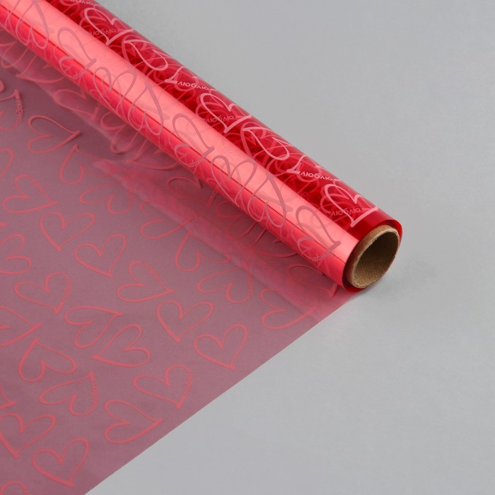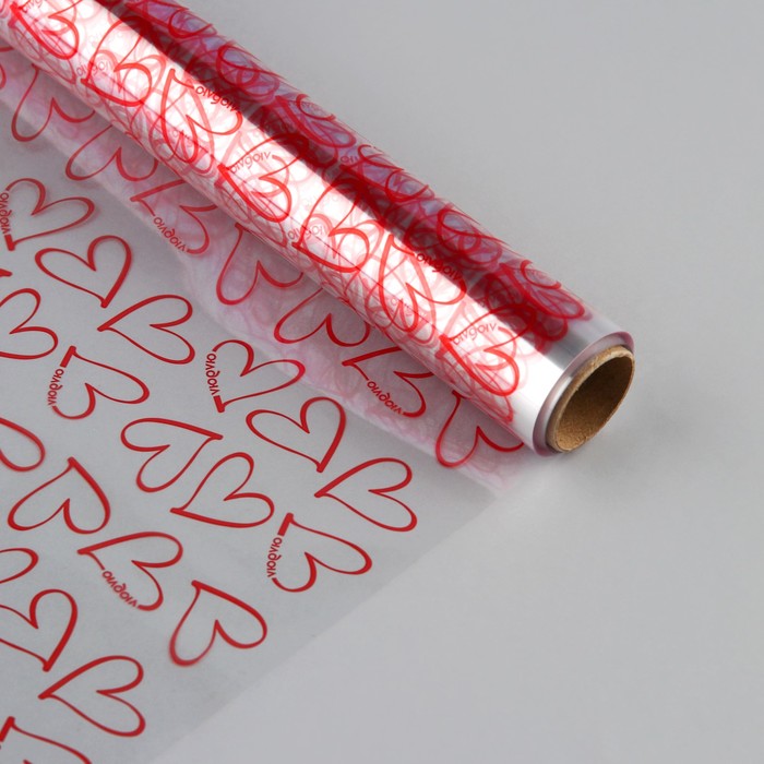 Плёнка для цветов упаковочная глянцевая прозрачная «Сердца», розовые, 0.6 x 10 м — Характеристики