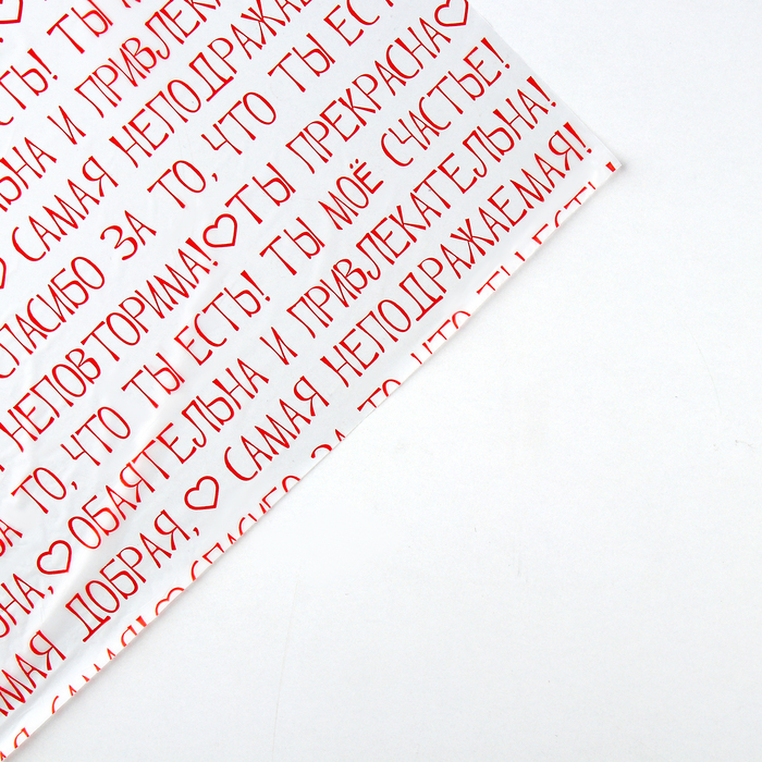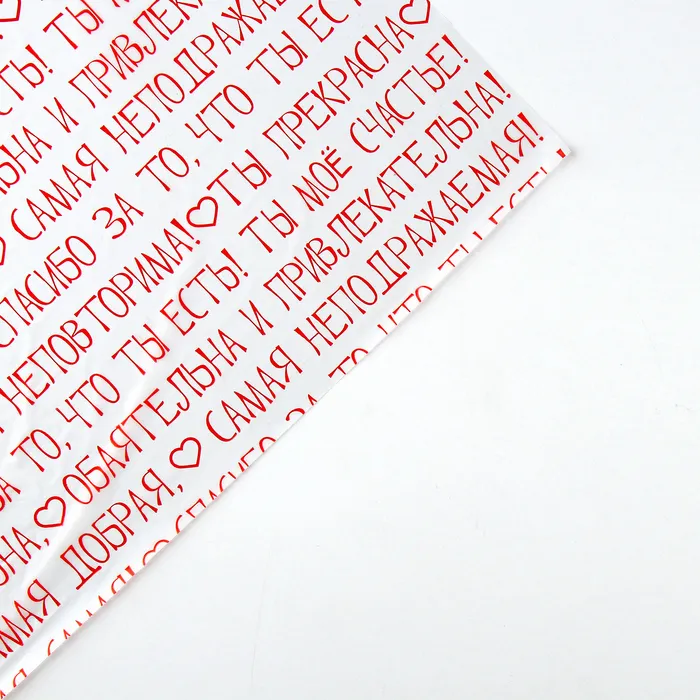 Плёнка для цветов упаковочная тишью влагостойкая «Пожелания», белая, 0.6 x 10 м — Характеристики