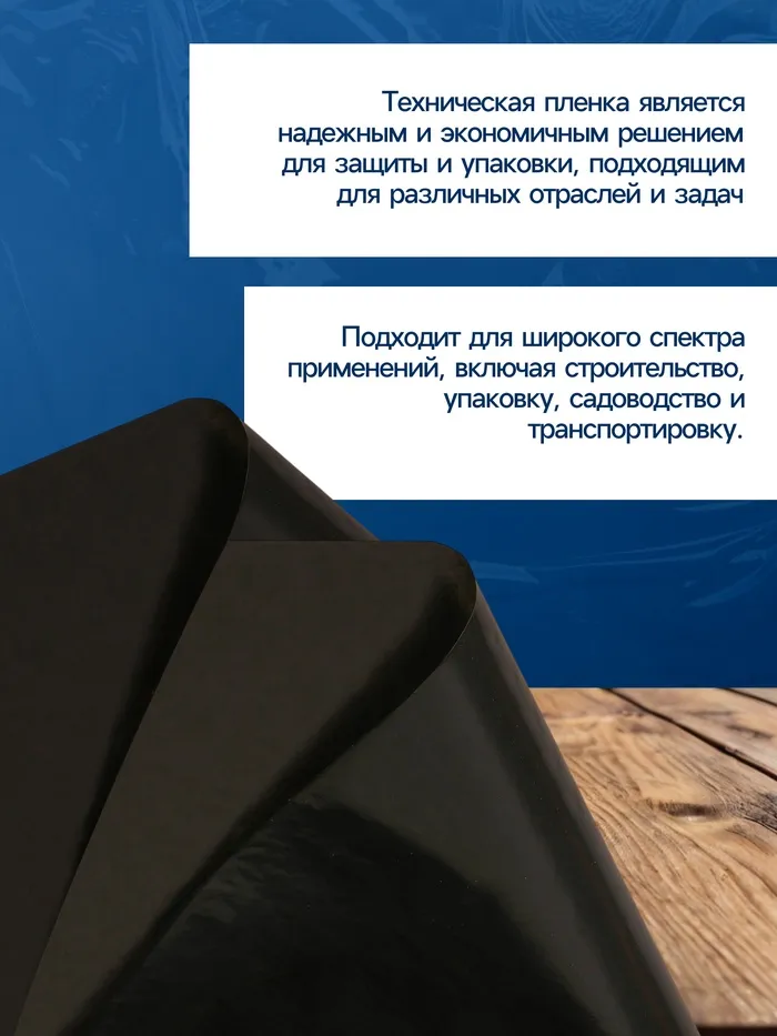 Техническая плёнка применяется для укрытия и защиты любых предметов. Она выпускается в виде рукава, который при необходимости можно разрезать. Плёнка производится из вторичного полиэтилена, поэтому она чёрного цвета..