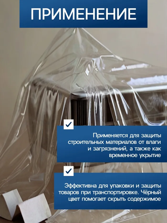 Техническая плёнка применяется для мульчирования (защиты посадок от сорняков), а также защиты любых предметов от осадков. Она выпускается в виде рукава, который при необходимости можно разрезать. Плёнка производится из вторичного полиэтилена, поэтому она чёрного цвета..