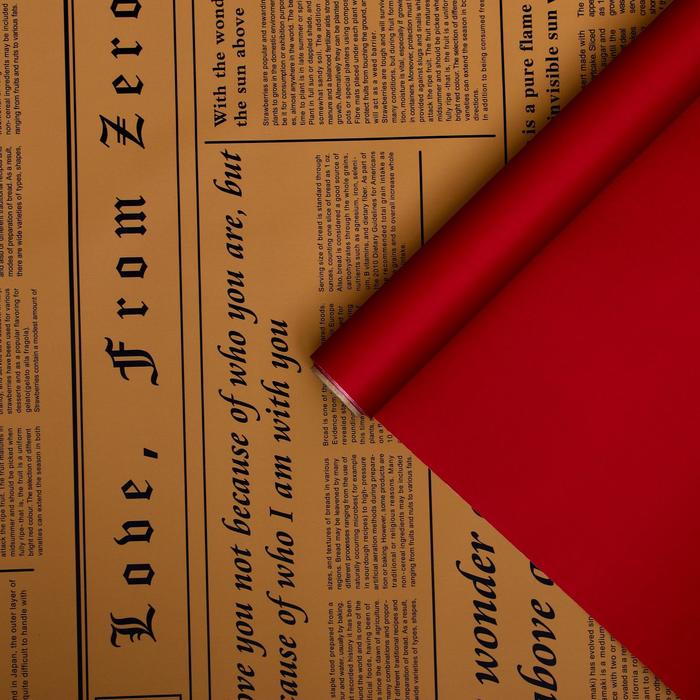 Плёнка матовая двухсторонняя «Газета на крафте» красный, 0.58×10 м