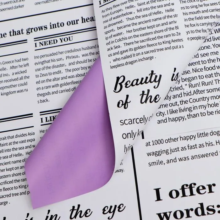 Плёнка матовая двухсторонняя «Газета» сиреневый, 57×57 см ±5% см — Характеристики