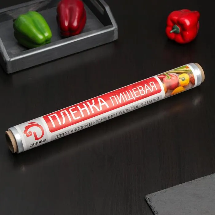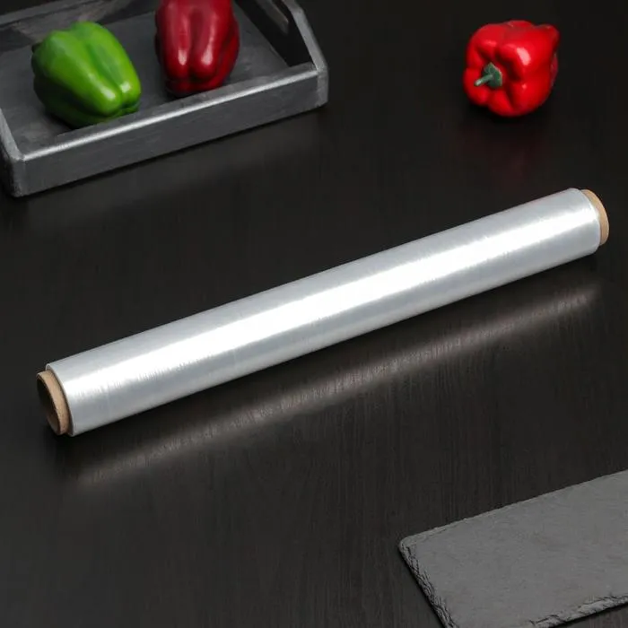 Пищевая пленка из полиэтилена (стрейч-пленка) широко используется для упаковки продуктов в пищевых производствах, розничной торговле, сетях фаст-фуд.