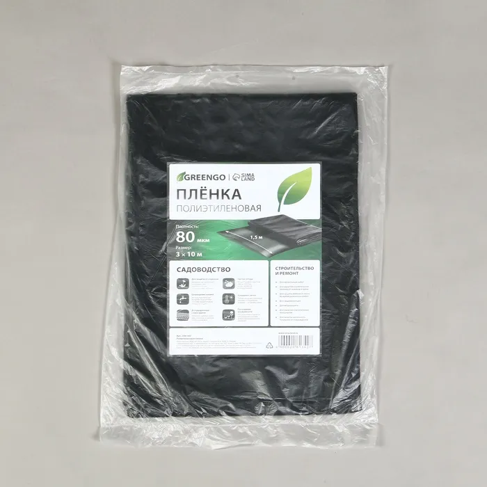 Плёнка полиэтиленовая, техническая, 80 мкм, чёрная, длина 10 м, ширина 3 м, рукав (1.5 м×2), Эконом 50%, Greengo — Характеристики