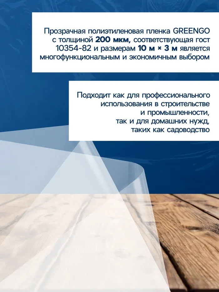 Плёнка полиэтиленовая, толщина 200 мкм, прозрачная, 10×3 м, рукав (1.5 м×2), ГОСТ 10354-82, Greengo — Характеристики