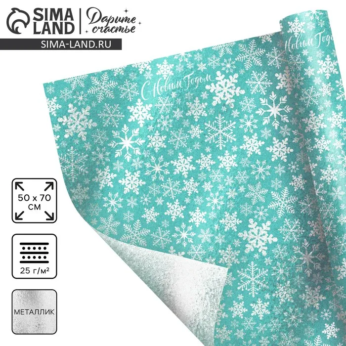 Плёнка упаковочная на Новый год фольгированная «Снежная вьюга», 70 х 50 см — Характеристики