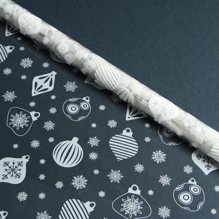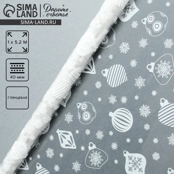 Плёнка упаковочная на Новый год глянцевая «Шары и снежинки», белая, 1 х 5.2 м