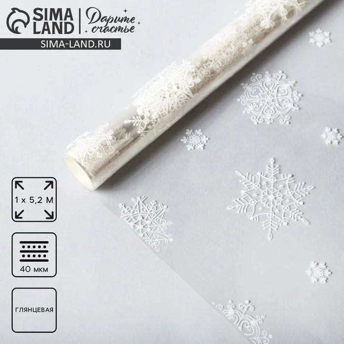 Плёнка упаковочная на Новый год глянцевая «Снежинки», белая, 1 х 5.2 м — Характеристики