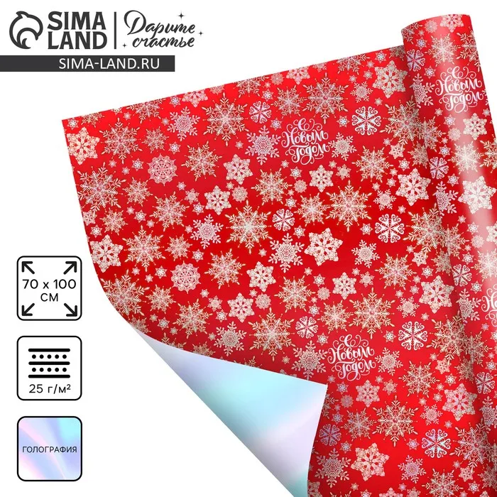 Плёнка упаковочная на Новый год полиграфичная «С Новым годом!», 70 х 100 см — Характеристики