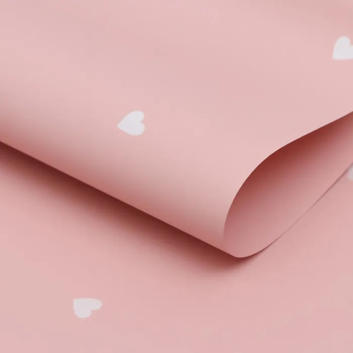 Плёнка в листах для цветов и декора, 58×58±5% см, «Сердечки», нежно - персиковая, 65 мкм — Характеристики