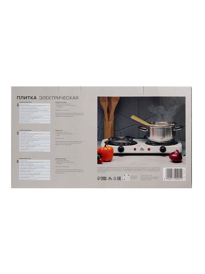 Плитка электрическая Luazon LHP-003, 2 конфорки, 2000 Вт, нагреватель спираль, белая — Характеристики
