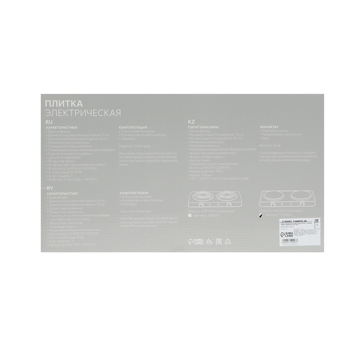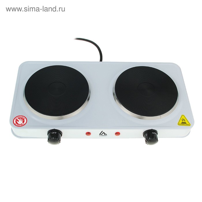 Плитка электрическая Luazon LHP-005, 2 конфорки, 2000 Вт, нагреватель диск, белая — Характеристики