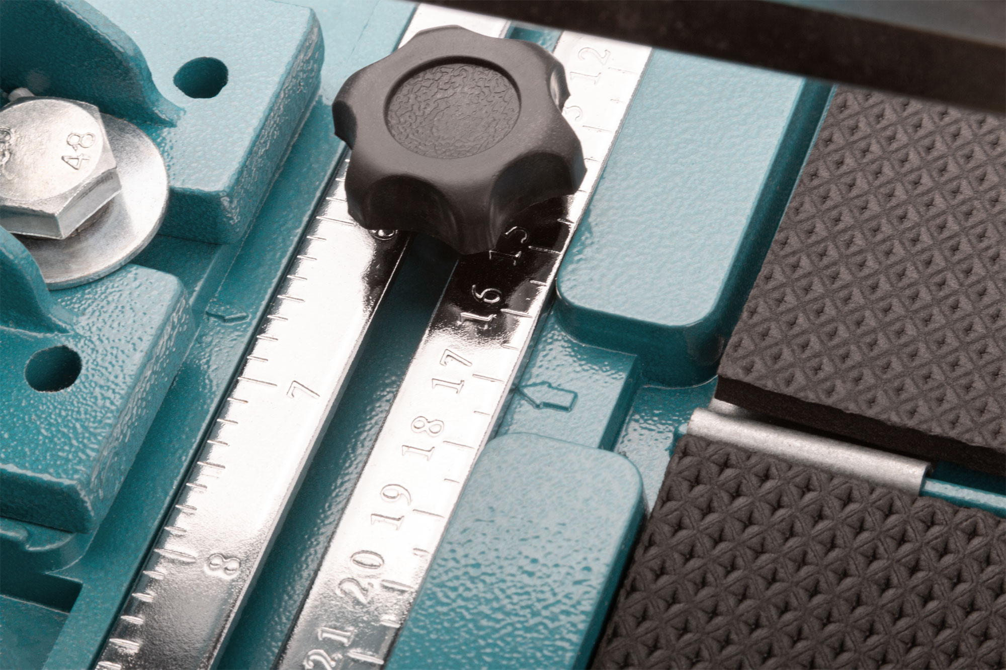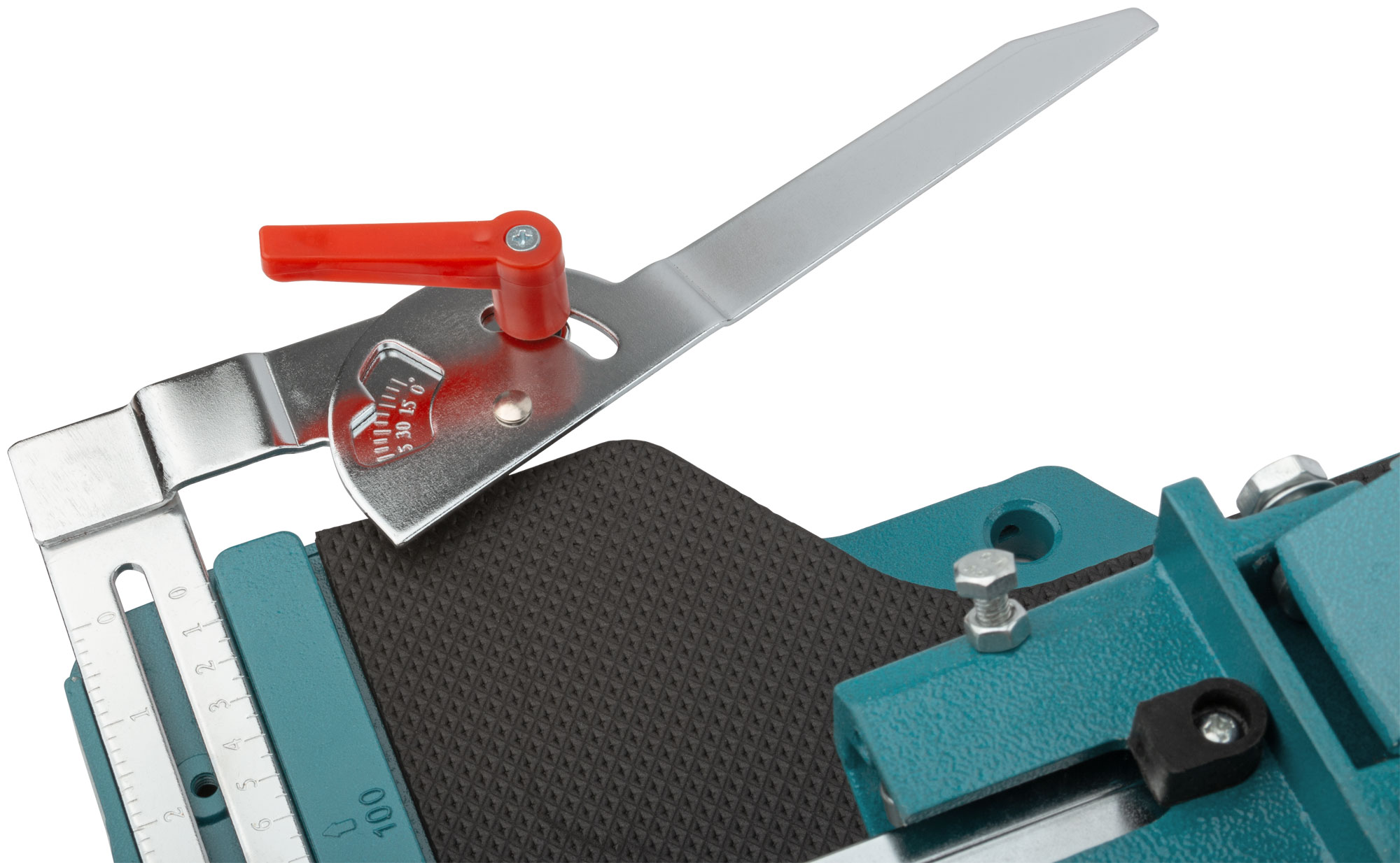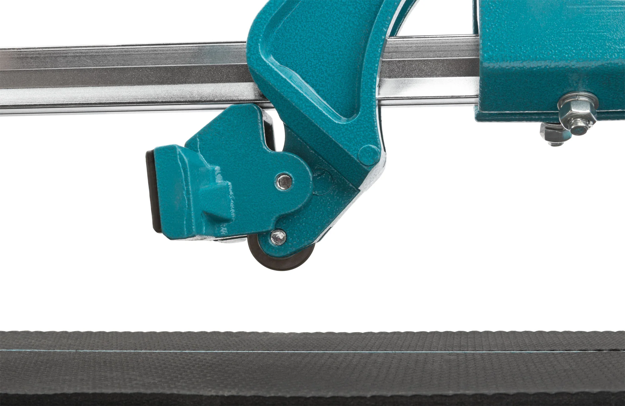 Монорельсовая конструкция оснащена подшипниками диаметром 20 мм, что обеспечивает мягкий и плавный ход. Диаметр ролика составляет 22 мм, а толщина 2 мм, что способствует долгому сроку службы и надежной работе. Усиленная платформа и подвижная линейка делают плиткорез более удобным и функциональным.