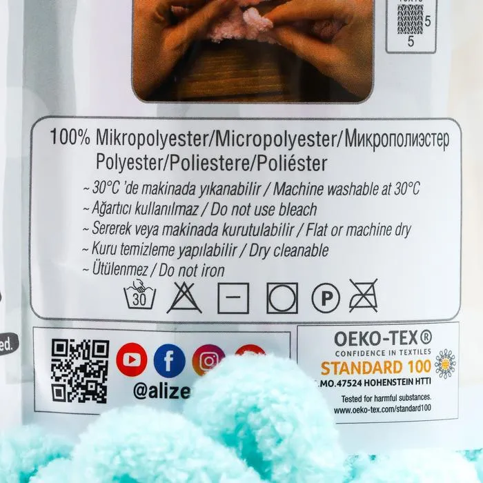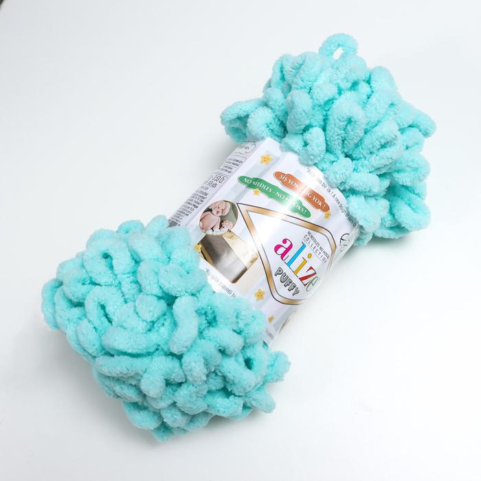 Плюшевая пряжа для вязания руками ALIZE, Puffy, 100 % микрополиэстер, 9 м/100 г, (19 св. бирюзовый) — Характеристики