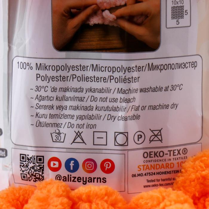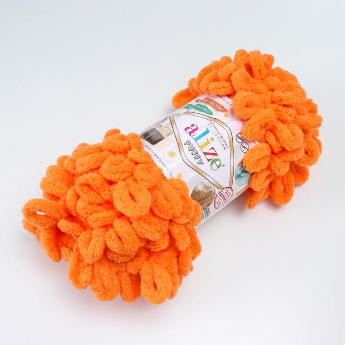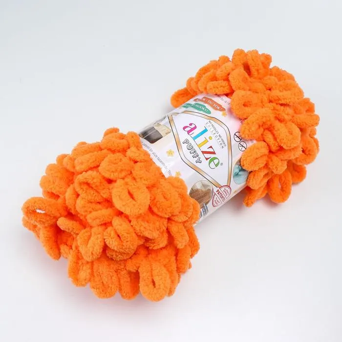 Плюшевая пряжа для вязания руками ALIZE, Puffy, 100 % микрополиэстер, 9 м/100 г, (336 оранжевый) — Характеристики