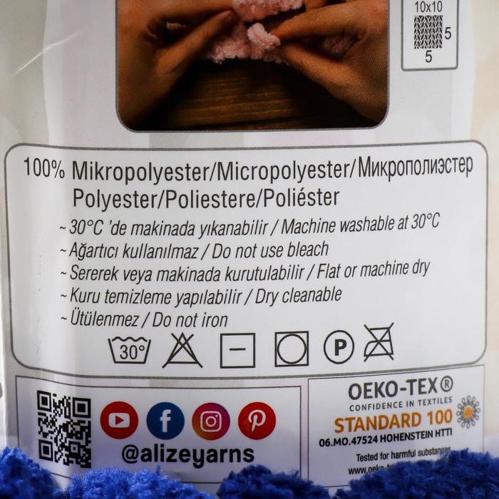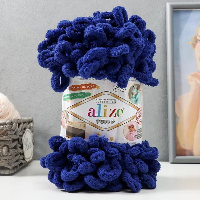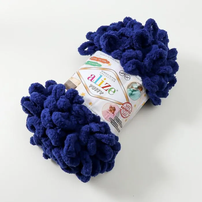 Плюшевая пряжа для вязания руками ALIZE, Puffy, 100 % микрополиэстер, 9 м/100 г, (360 яр. синий) — Характеристики