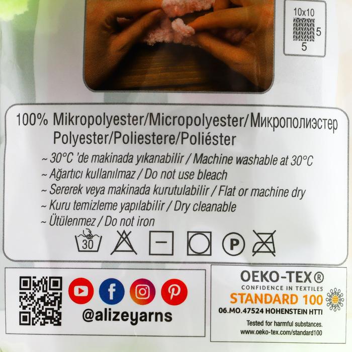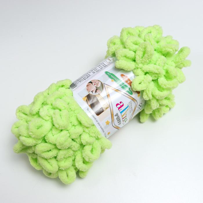 Плюшевая пряжа для вязания руками ALIZE, Puffy, 100 % микрополиэстер, 9 м/100 г, (41 фисташковый) — Характеристики