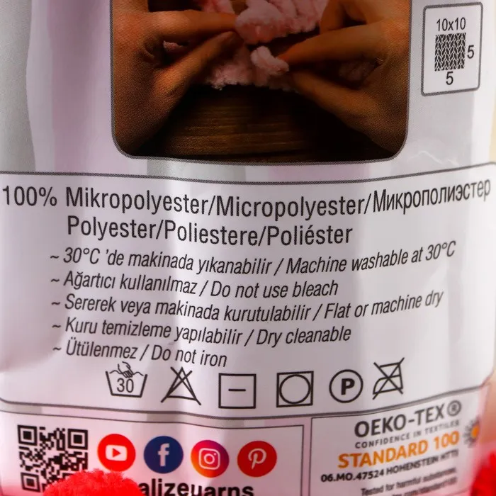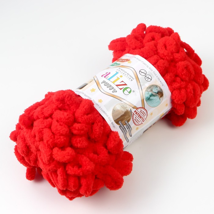 Плюшевая пряжа для вязания руками ALIZE, Puffy, 100% микрополиэстер, 9 м/100 г, (56 красный) — Характеристики