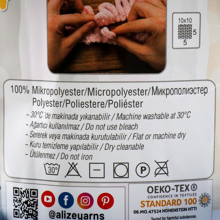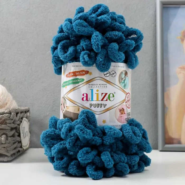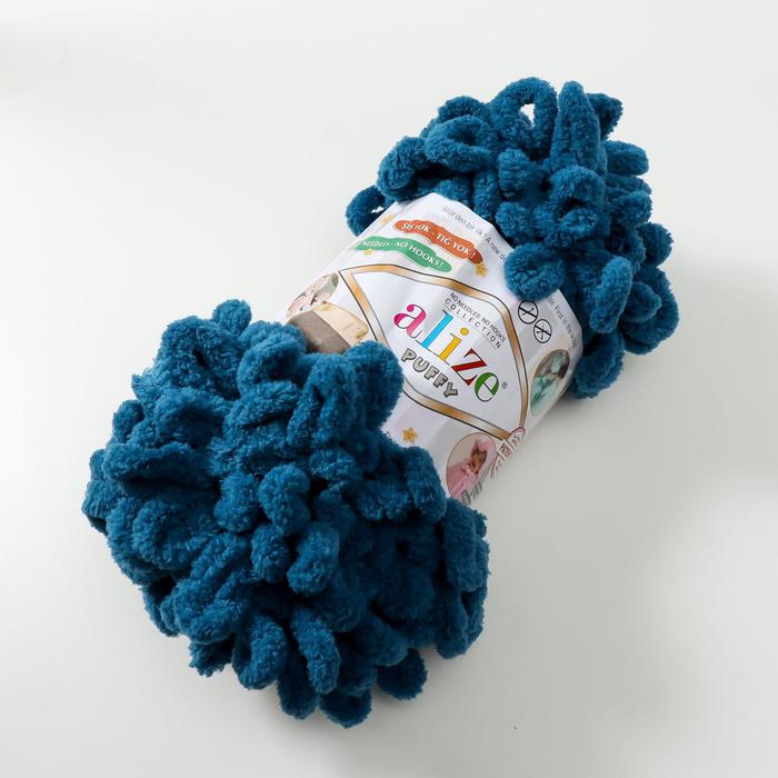 Плюшевая пряжа для вязания руками ALIZE, Puffy, 100% микрополиэстер, 9 м/100 г, (646 морской) — Характеристики