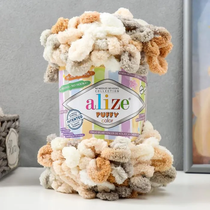 Плюшевая пряжа для вязания руками ALIZE, Puffy color, 100 % микрополиэстер, 9 м/100 г, (5926) — Характеристики