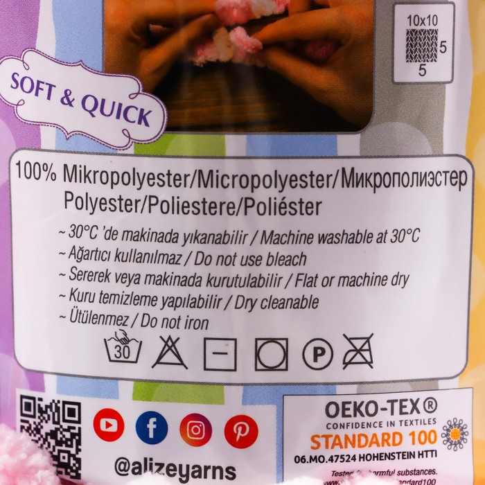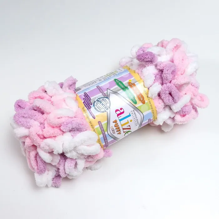 Плюшевая пряжа для вязания руками ALIZE, Puffy color, 100 % микрополиэстер, 9 м/100 г, (6051) — Характеристики