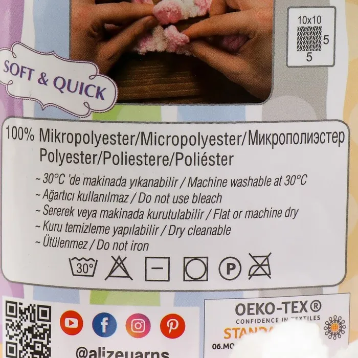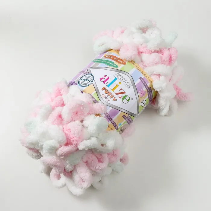 Плюшевая пряжа для вязания руками ALIZE, Puffy color, 100 % микрополиэстер, 9 м/100 г, (6052) — Характеристики