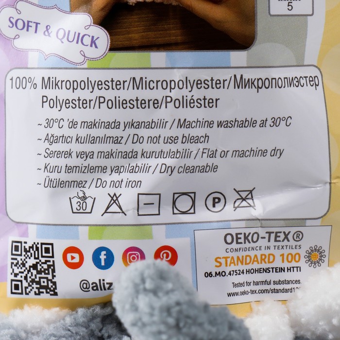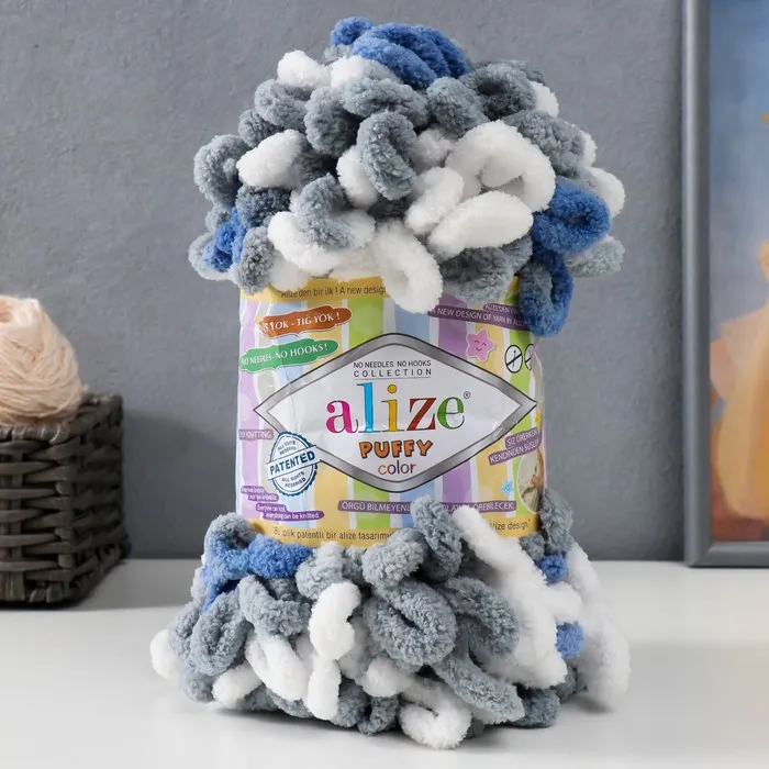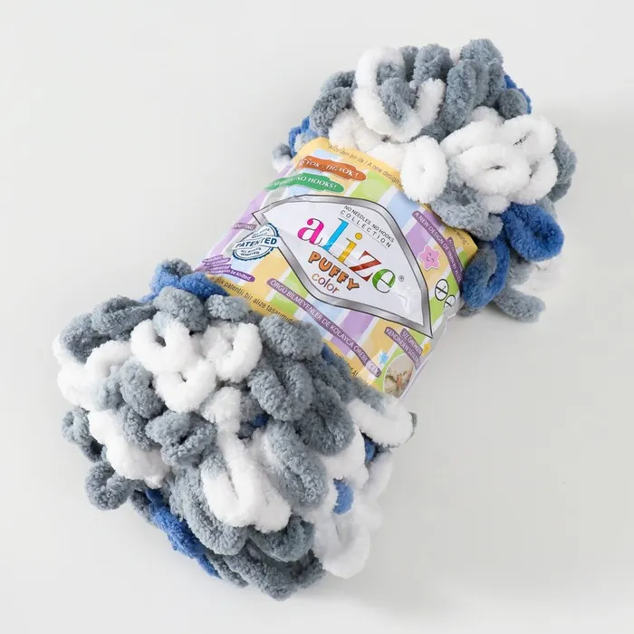 Плюшевая пряжа для вязания руками ALIZE, Puffy color, 100 % микрополиэстер, 9 м/100 г, (6075) — Характеристики