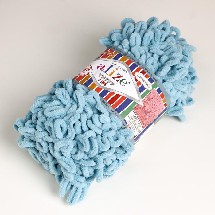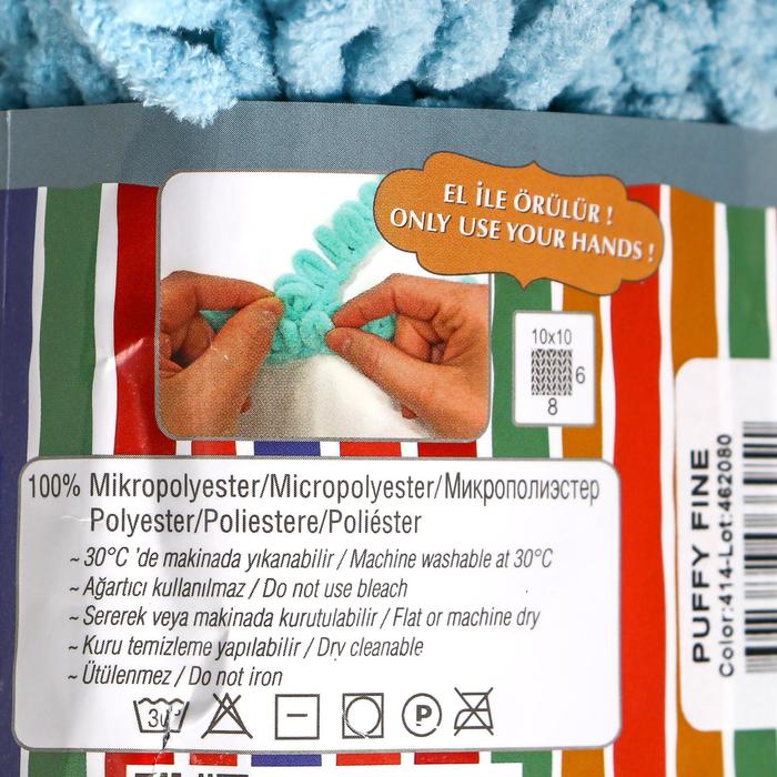 Плюшевая пряжа для вязания руками ALIZE, Puffy fine, 100% микрополиэстер, 14.5 м/100 г, (414 лазурный) — Характеристики